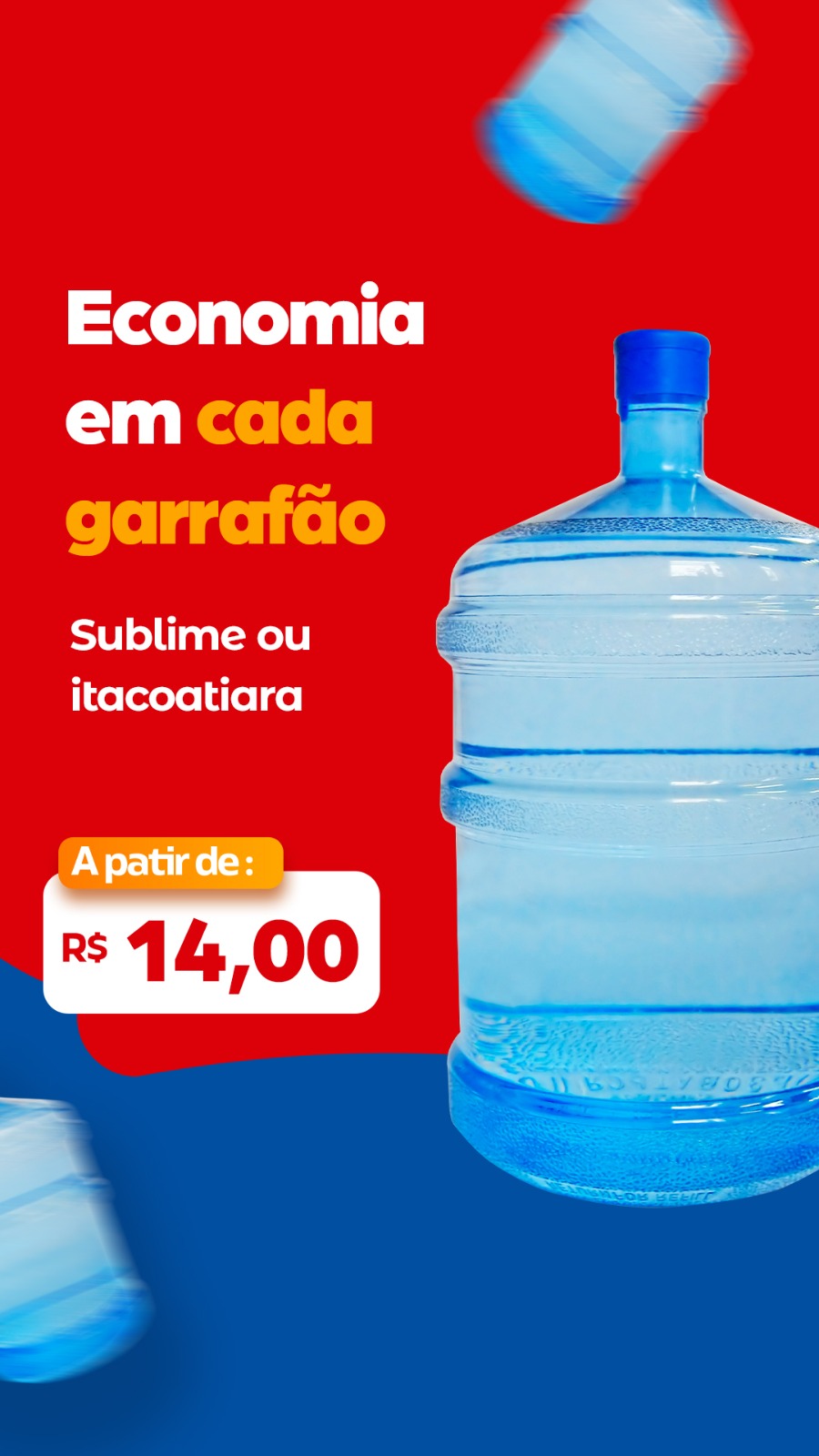 Galões de água mineral de 20L das melhores marcas. Água pura e de qualidade.